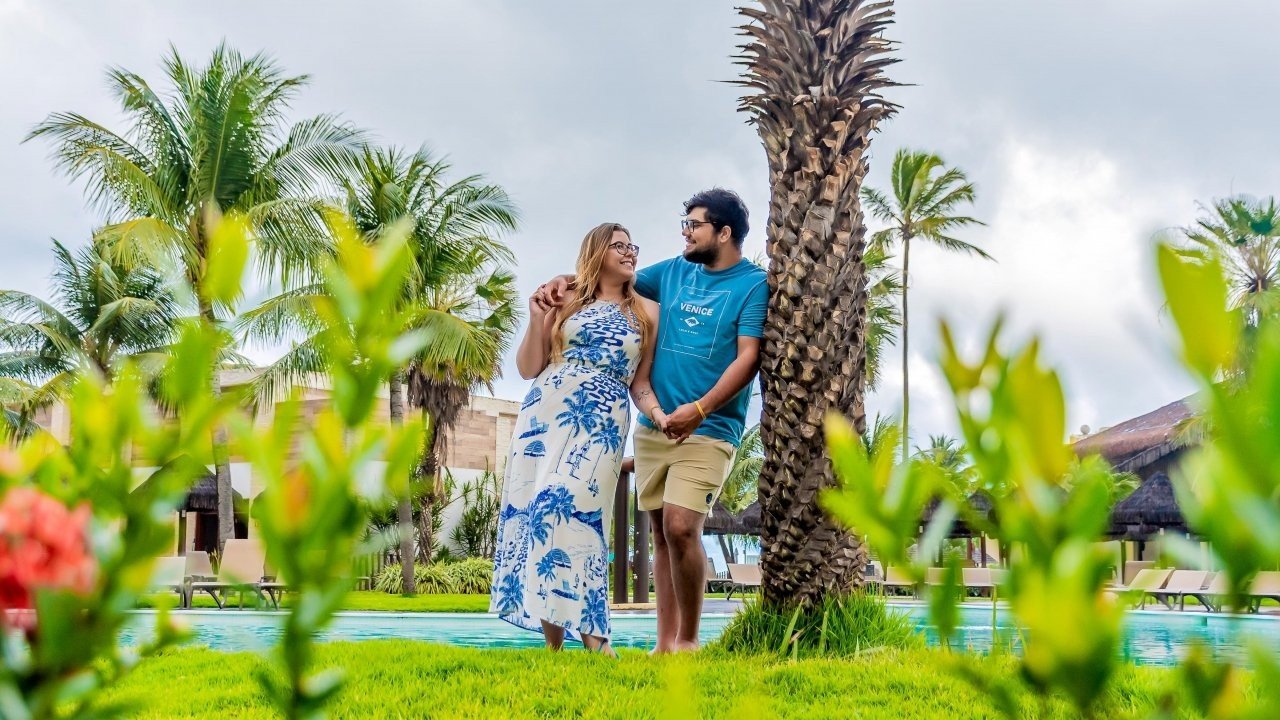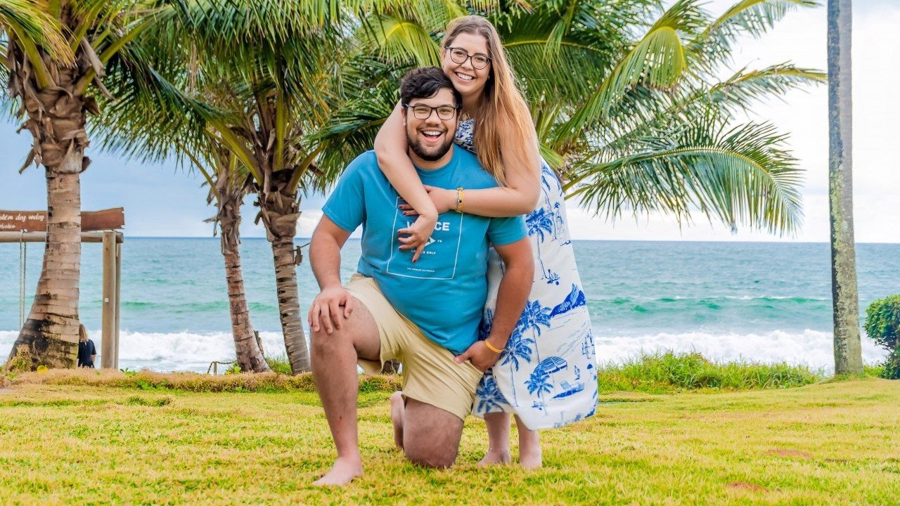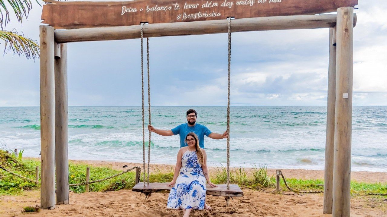 O casal convida para recepção no dia 03 de abril de 2027, na chácara da família do noivo, em Caldazinha, Goiás. Será a partir de 13h. Não vai perder, né?