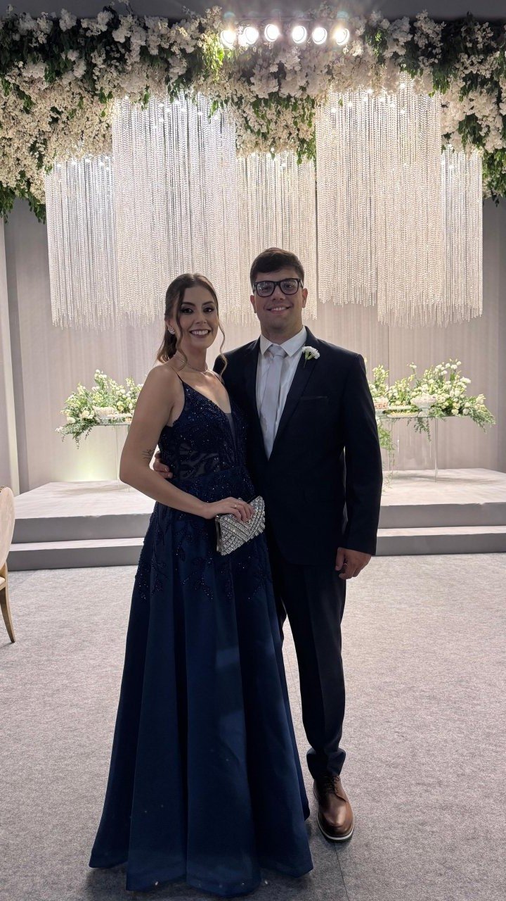 Gostaríamos muito de contar com a presença de todos vocês no momento em que nossa união será abençoada diante de Deus! A cerimônia será rápida e tentaremos ser extremamente pontuais. Contamos com vocês! Dia 03 de abril de 2027, às 11h. Na Paróquia Nossa Senhora Aparecida e Santa Edwiges, no setor Nova Suiça, em Goiânia, Goiás.